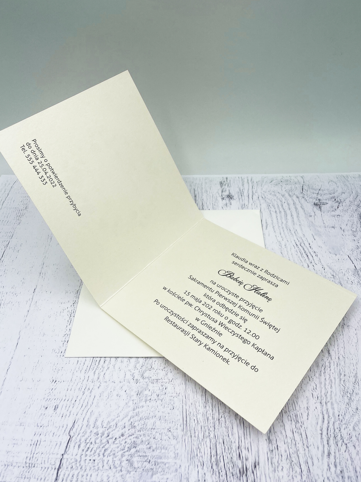 Format zaproszenia 14×14, po rozłożeniu 14×28