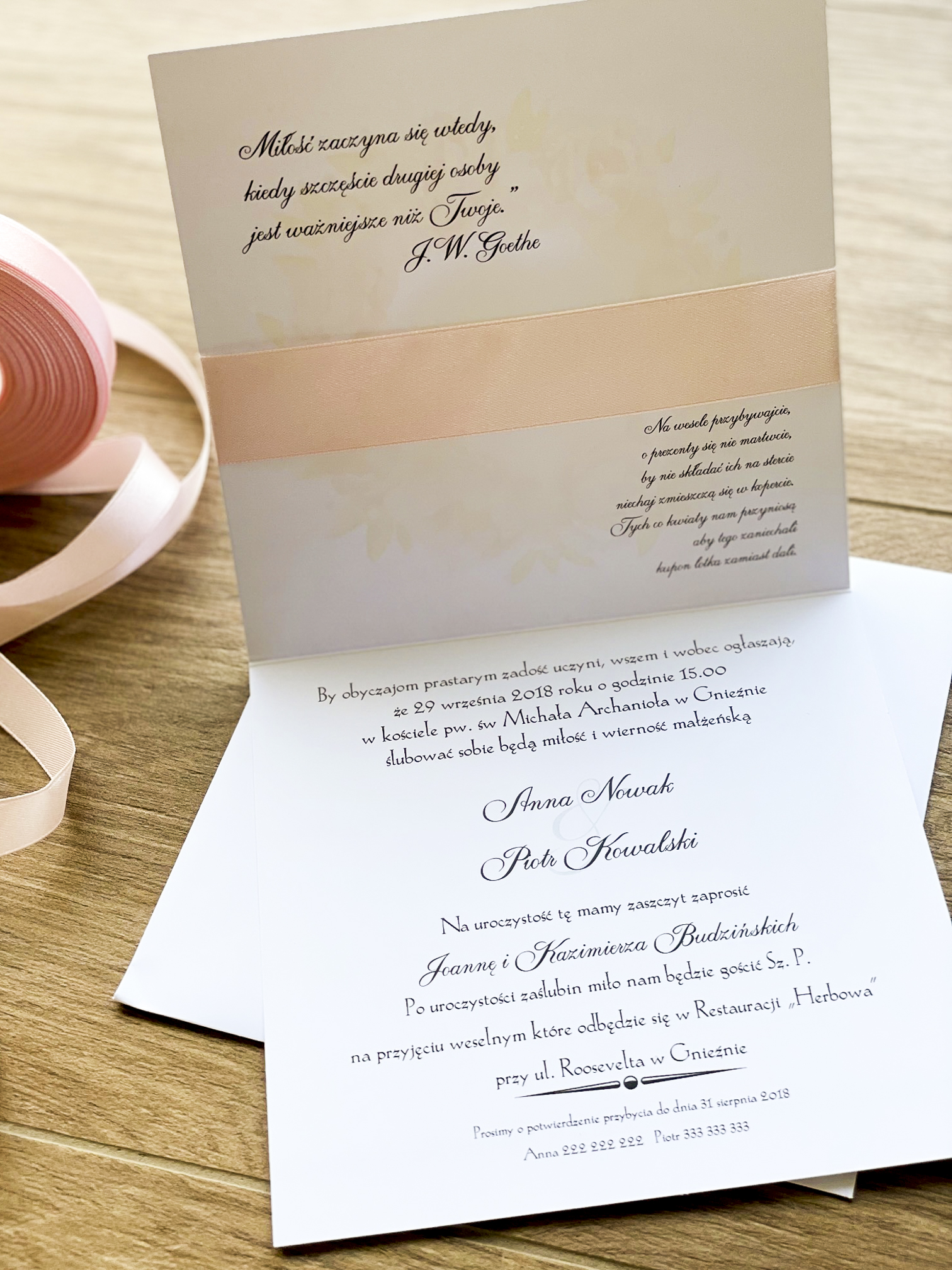 Dodatkowa personalizacja zapraszanych osób co nadaje elegancji i wytworności w zapraszaniu najbliższych.