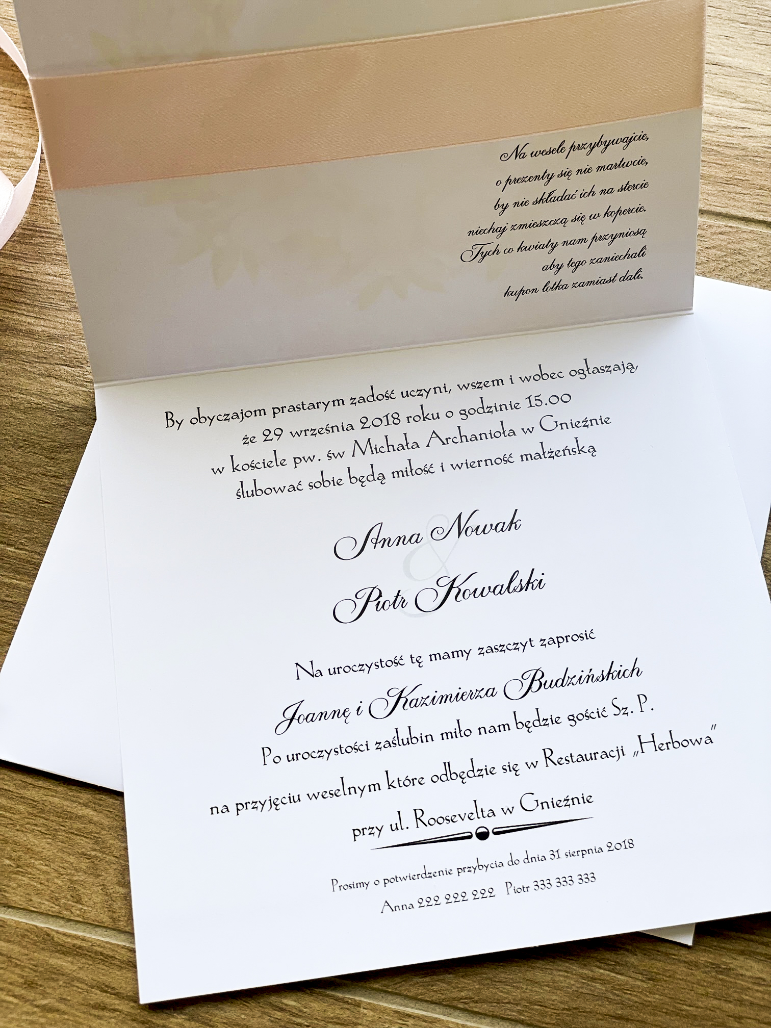 Format zaproszenia 14×14, po rozłożeniu 14×28