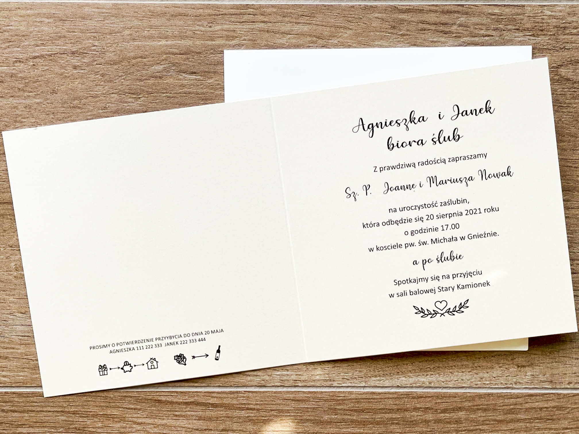 Format zaproszenia 14×14, po rozłożeniu 14×28