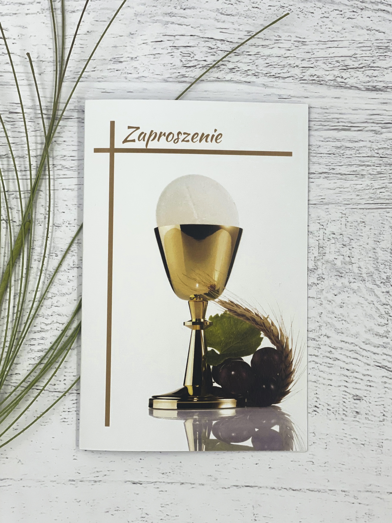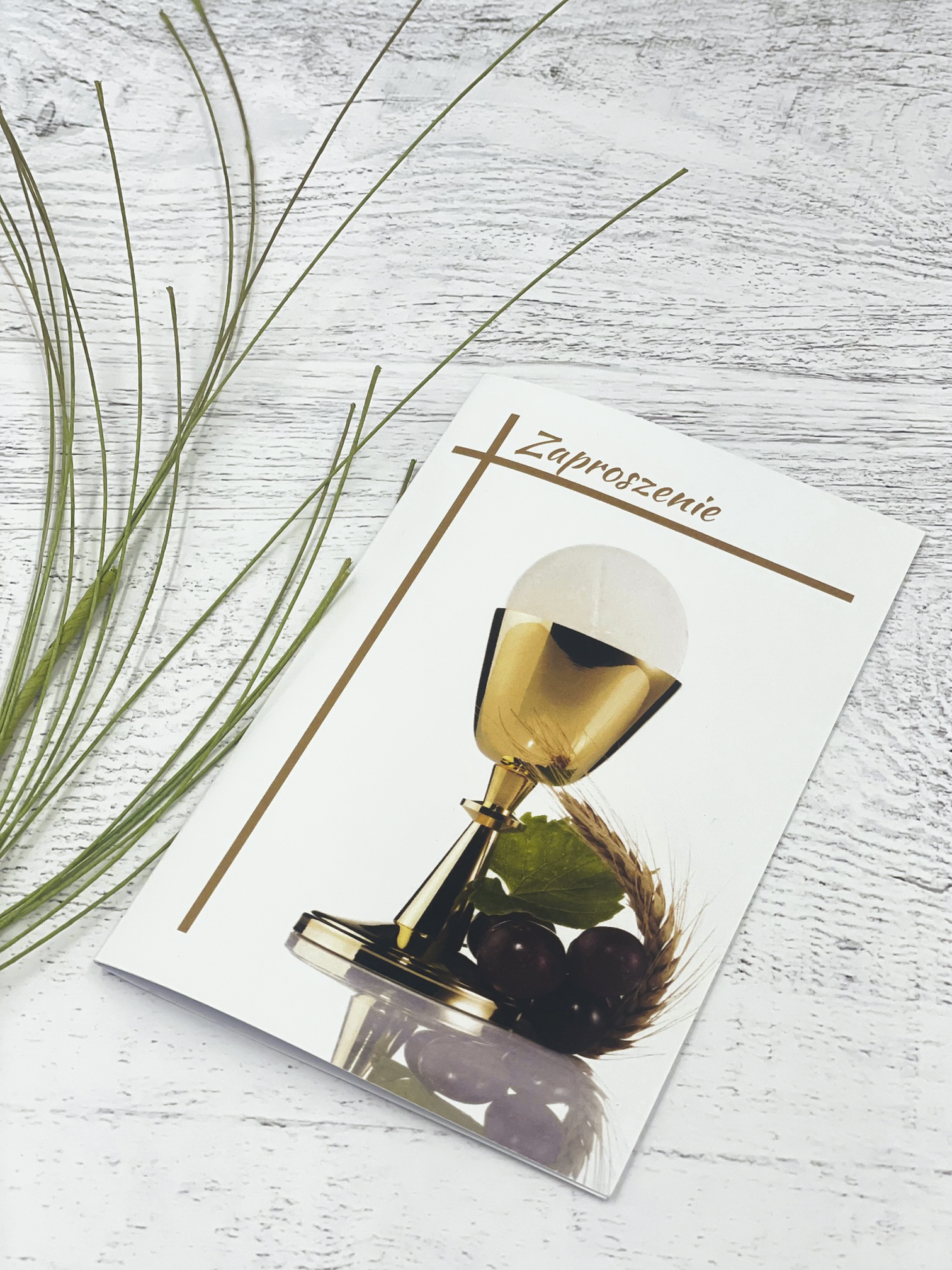 Zaproszenie z hostią. Możliwość dodania fotografii dziecka.